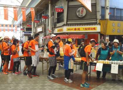 下段:ごちそうを提供するボランティア。八幡屋商店街では3か所ぐらいあります。