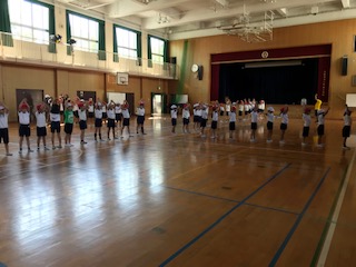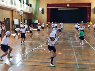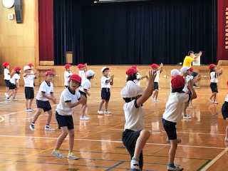 「はれた空にたねをまこう」のダンスの練習をしています。