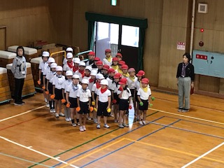 最初は1・2年生の演技を3・4・5・6年生が参観しました。