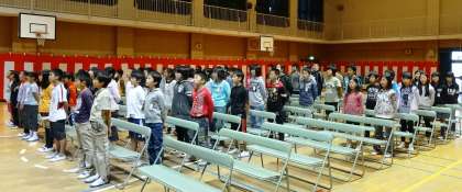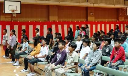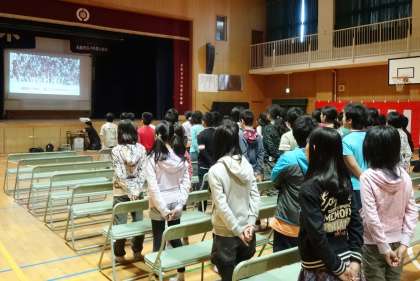上段:呼びかけの担当のグループだけがその時に立ってセリフを言います。今は5年生の児童のグループです。