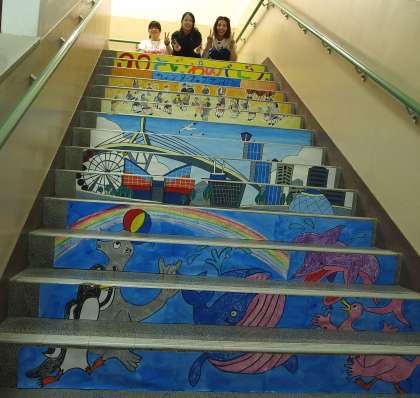 下段:階段アート2 キッズバンド、港大橋、水槽を泳ぐ動物