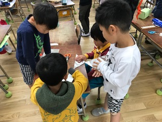 学習発表会の劇で使う小道具や持ち物などを考えています。