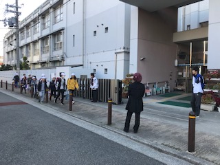 更生保護女性会の皆様が 朝 正門前に立って