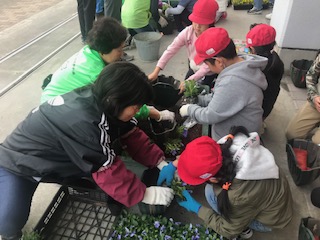 学校の西側正門の「あいさつ通り」の塀に取り付けます。