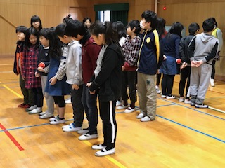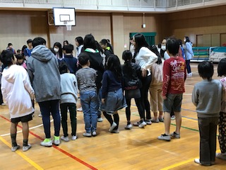 集会委員の子どもたちが 楽しいゲームを企画して進めています。