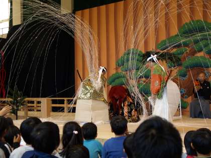 下段:両側に蜘蛛の糸を出して戦います。子どもたちは、蜘蛛の糸に大喜びです。