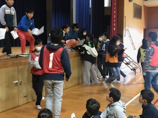 その声をみんなで聞いて、どの先生の声なのか考えます。