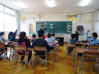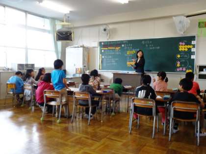 3年生の算数の研究授業をしました。習熟度別の2クラスに分かれて、小数の「1より小さい数を表そう」の単元をブロックを使ったりして学習しました。放課後の研究討議は、大阪市教育センターの教育指導員の先生を講師としてお招きし行いました。