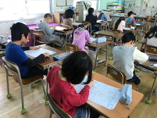 がんばってテストに取り組んでいます。