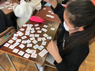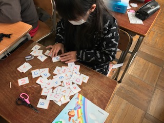 英語の大文字と小文字のカードでマッチングさせるゲームをします。