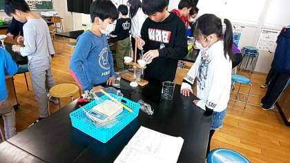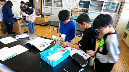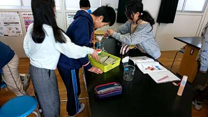 溶け残った食塩やミョウバンをろ過で取り除いています。