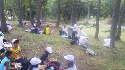 11時20分に高原に到着しました。天気がよくとても暑いです。でもやっぱり高原です。木陰は吹く風も爽やかで、昼食をとるのに最適です。