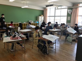 前半の子ども達が、自分の机といすを廊下に出していたので、