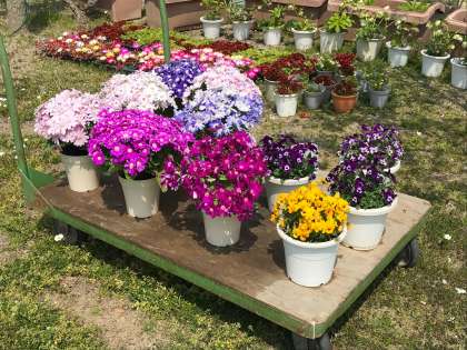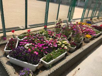 いろんな いろの うつくしい はなが さいています。