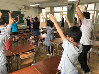先生の合図で、体を動かしました。