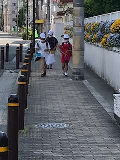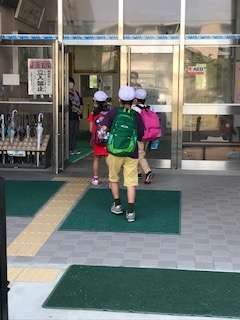 前半に登校する子ども達が、元気にやってきました。