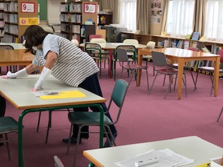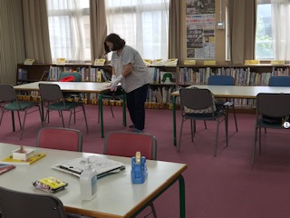 新型コロナウイルス感染症の拡大を防ぐために 学校では様々な場所の消毒を行っています。