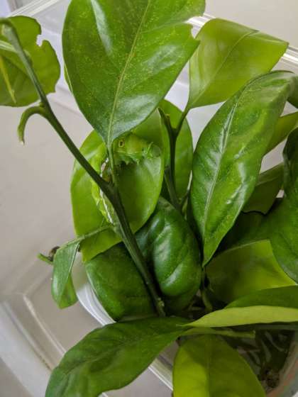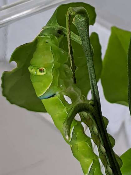 黒色だったアゲハちょうのよう虫が大きくなり、