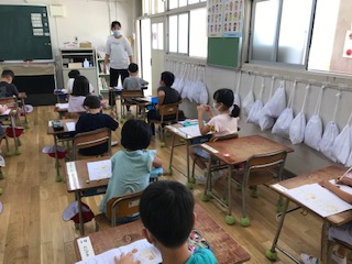 先生の話をしっかりと聞き、今日のひらがなの学習をしました。