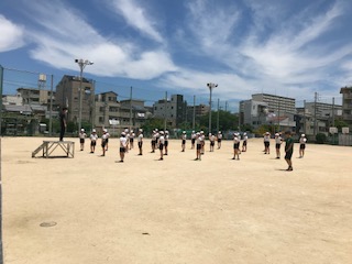次に、自分のペースで、運動場のトラックの周囲を走りました。