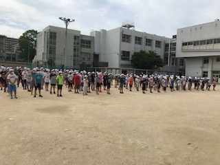 令和2年度になり 初めて運動場で児童朝会を実施しました。