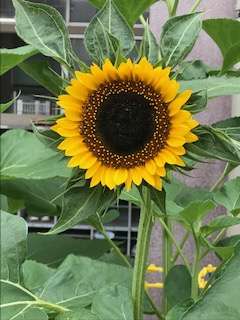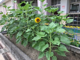 1年生の教室前の学習園に植えているヒマワリが