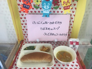 きょうのきゅうしょくには てぼまめというまめもつかわれています。