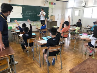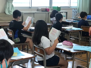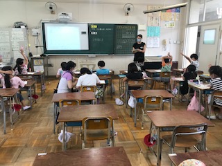 学級を2分割にして学習しています。