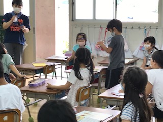 初めは手でリズム打ちをしながら、みんなで歌いました。