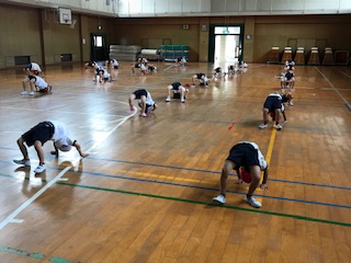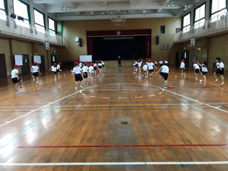 講堂で、体育の学習をしました。