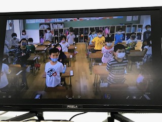 今年度は、ビデオに撮って、各教室で発表をみることにしました。