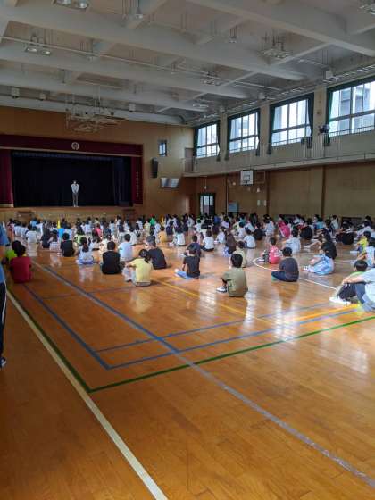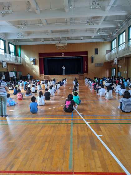 子ども達は、自分たちの命を守る行動について熱心に聞いていました。