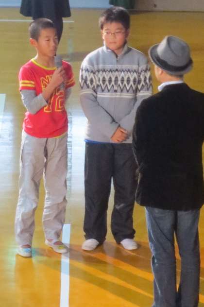 下段:児童生徒代表のお礼のあいさつ(八幡屋小6年児童)