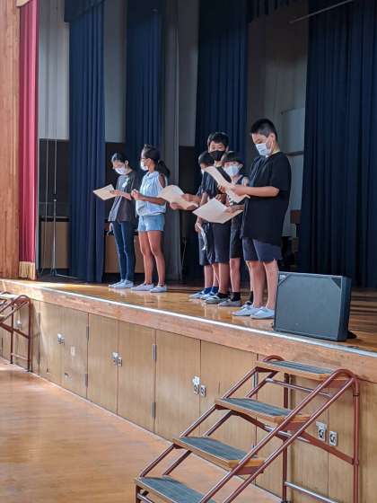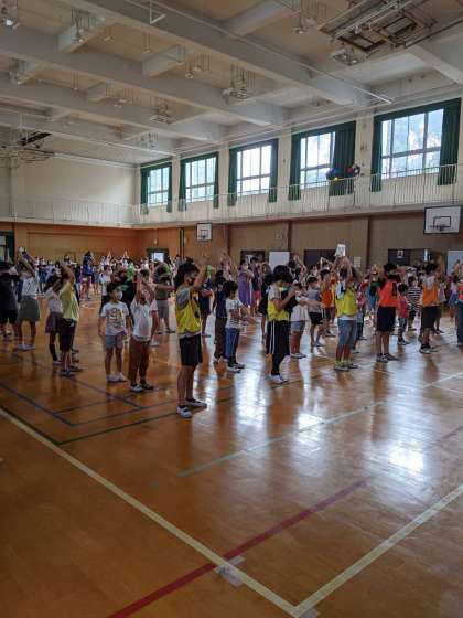集会委員会が言った答えと同じポーズをした人が正解というゲームです。
