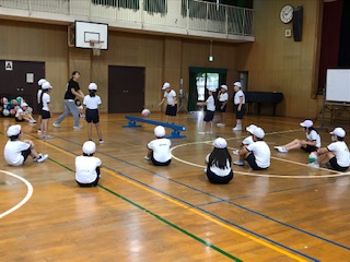 講堂で体育の学習をしました。