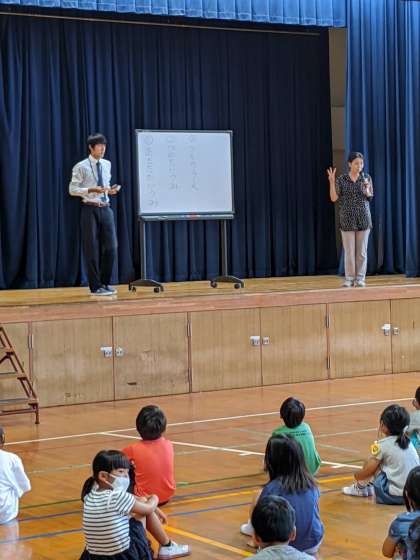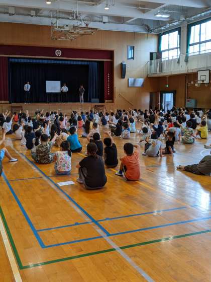 そこで、今日の児童朝会は「台風」を取り上げて、