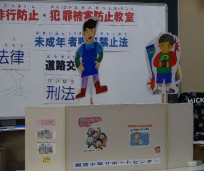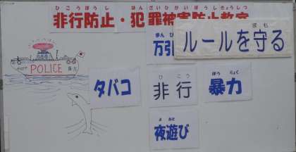 今回は、紙人形を使ったりしながら、「万引き」「タバコ」「夜遊び」等の非行への誘惑を断る勇気の大切さや、自分を守る方法等を教えていただきました。保護者向けのプリントも用意していただいたので、冬休みに向けてぜひお読みください。