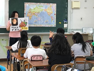 「大航海時代」というテーマで作成された紙芝居をもとに学習しました。