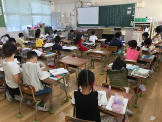 写真は、1年生・2年生・3年生の1時間目の様子です。