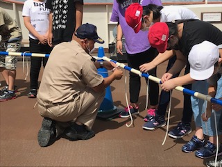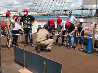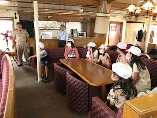写真は、船長さんの話を聞いている子ども達の様子と、