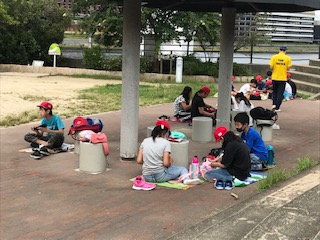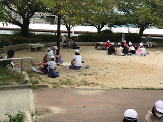 今年度、大空の下で初めてみんなで食べた昼食でした。