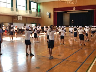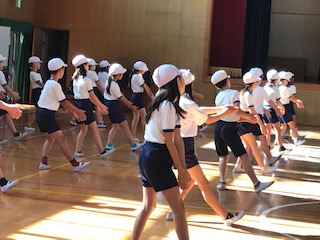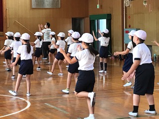 「スポーツ記録会」で発表する表現運動の練習をしました。