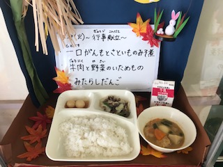 ★きょうは、月見(つきみ)の行事(ぎょうじ)こんだてです。