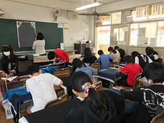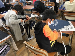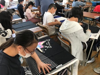 自分で選んだ柄に、エプロンの形を切る活動です。