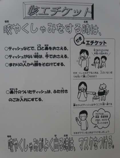インフルエンザの児童が5人に増えました。引き続き注意が必要です。