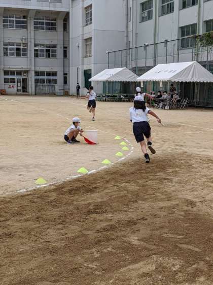 みんなでしっかりとバトンをつないでゴールをめざしました。