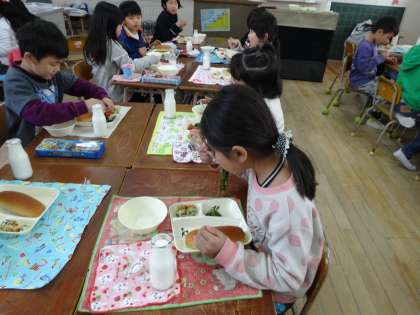 2年生の学習園でとれた菊菜を使って、校長先生がおひたしを作り、2年生が食べました。大人の味ですが子どもたちは喜んで食べていました。