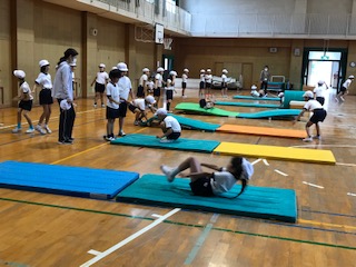 講堂で体育の学習をしました。