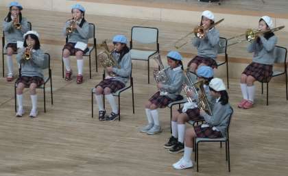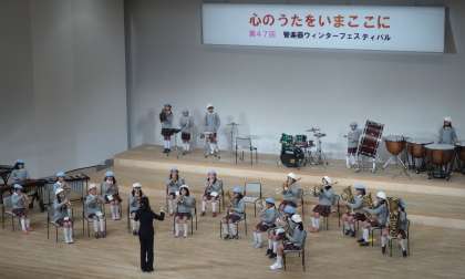 大阪狭山市のSAYAKAホールで行われた「ウィンターフェスティバル」に、キッズバンド八幡屋が出演しました。保護者の方や先生方が見守る中、大きなホールでしっかり演奏することができました。