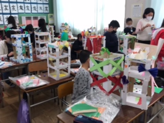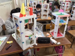子ども達は創意工夫した、自分だけの建物を完成します。